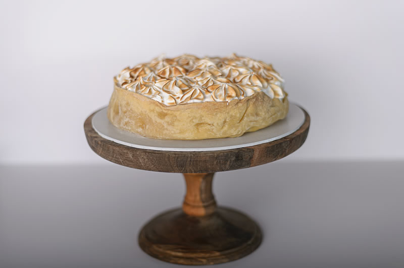 Classic lemon meringue with homemade crust, zesty lemon curd filling and topped with fluffy Italian meringue.